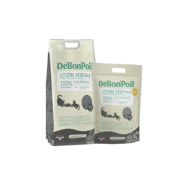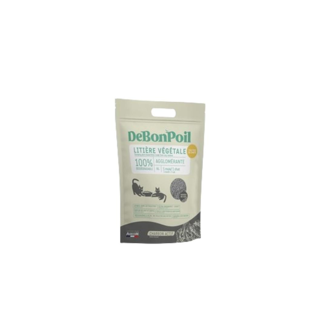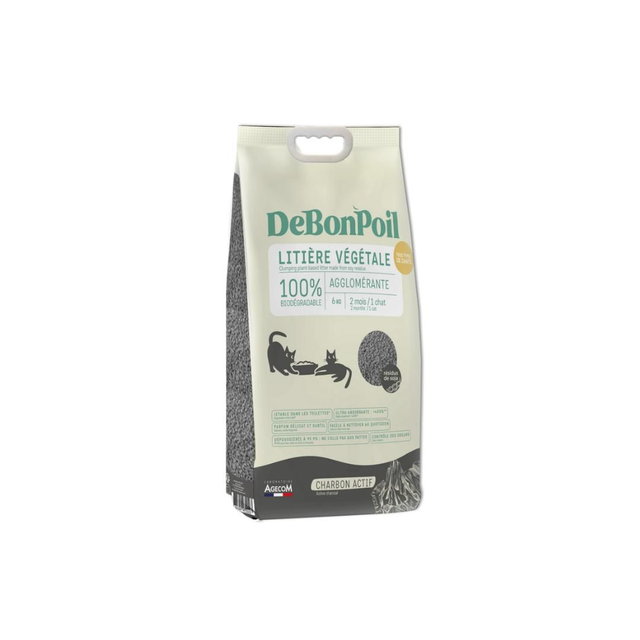 Litière agglomérante biodégradable au charbon actif