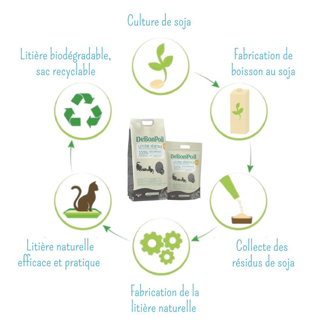 La partie utilisée par le chat absorbe l’urine, les odeurs, et s’agglomère rapidement. Jeter quotidiennement les agglomérats de litières souillée à la poubelle ou dans les toilettes, et rajouter l’égale quantité du produit dans le bac.